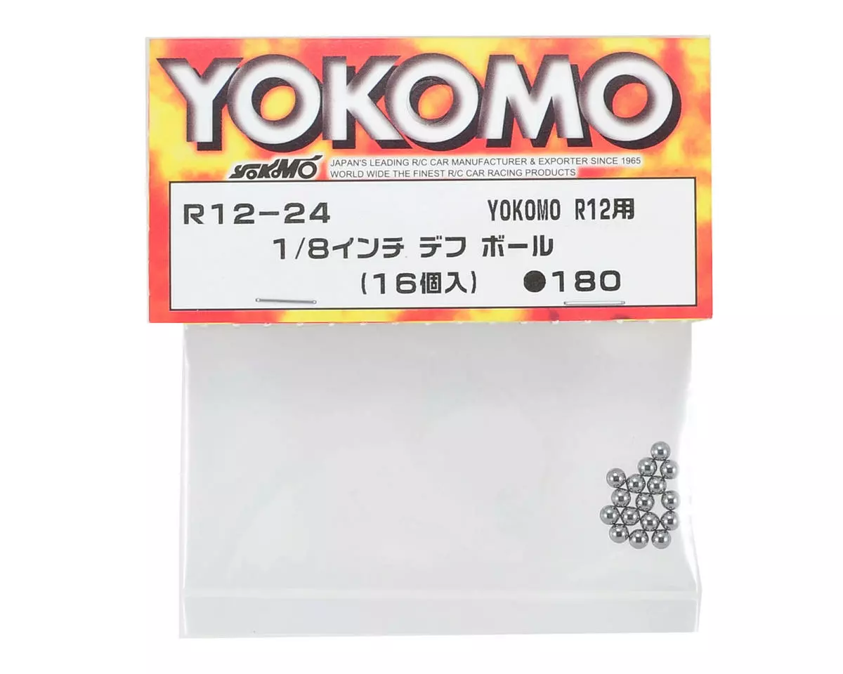 This is a pack of sixteen replacement Yokomo 1/8 Inch Differential Balls, and are intended for use with the Yokomo R12 1/12 scale pan car.