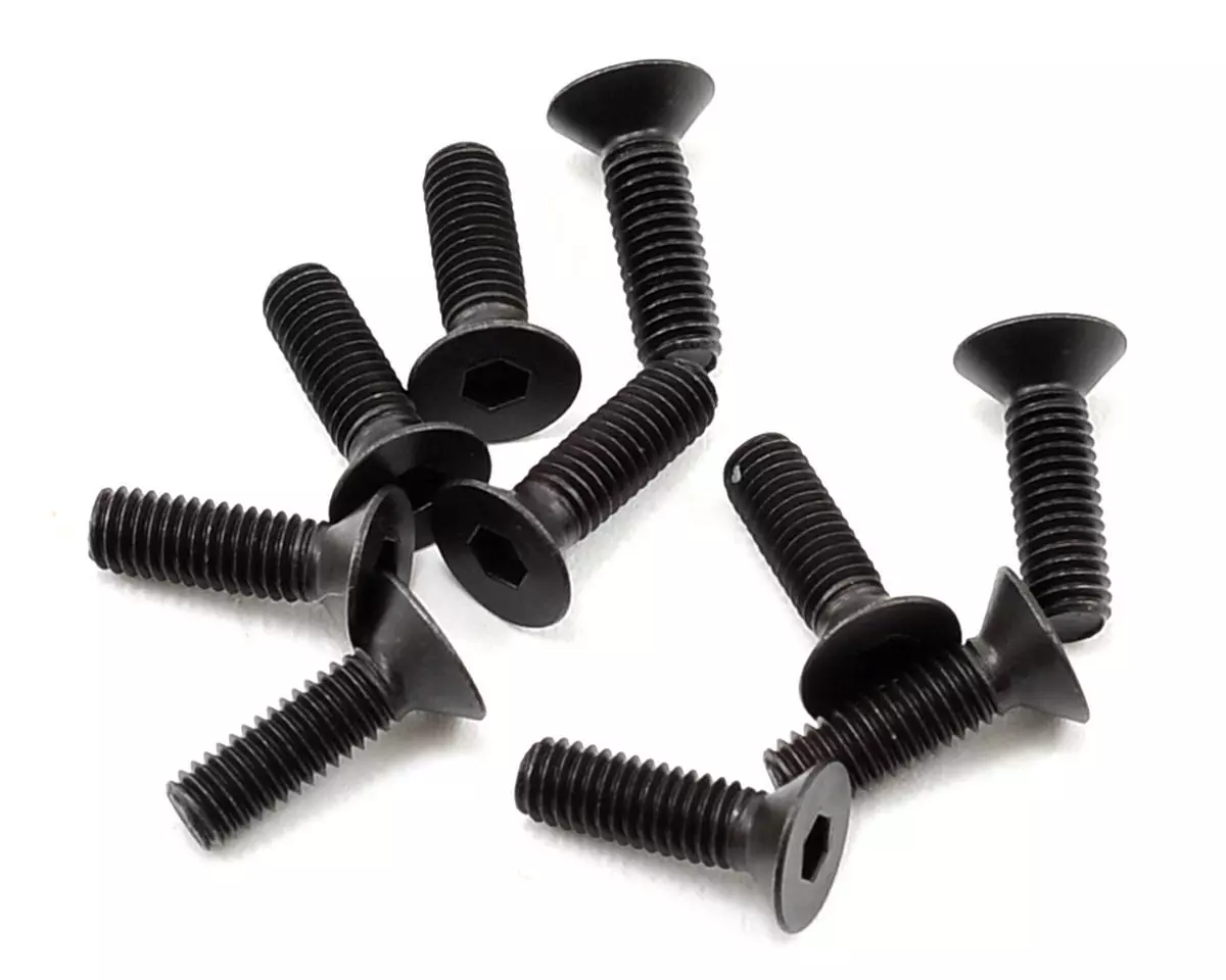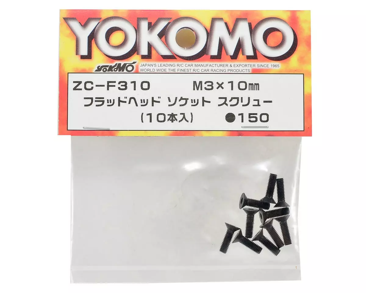 This is a pack of ten replacement Yokomo 3x10mm Flat Head Hex Screws.