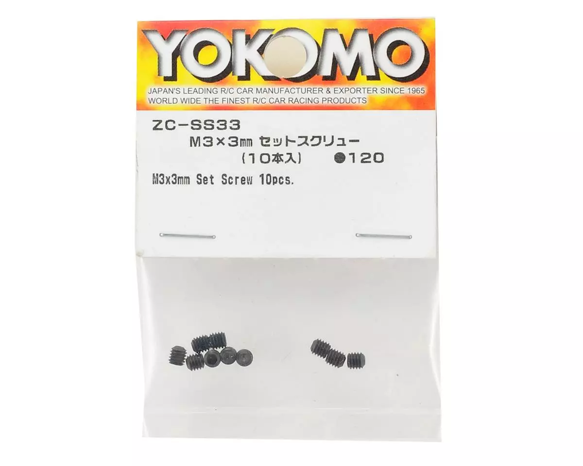 This is a pack of ten Yokomo 3x3mm Set Screws. These set screws are used for a variety of applications.