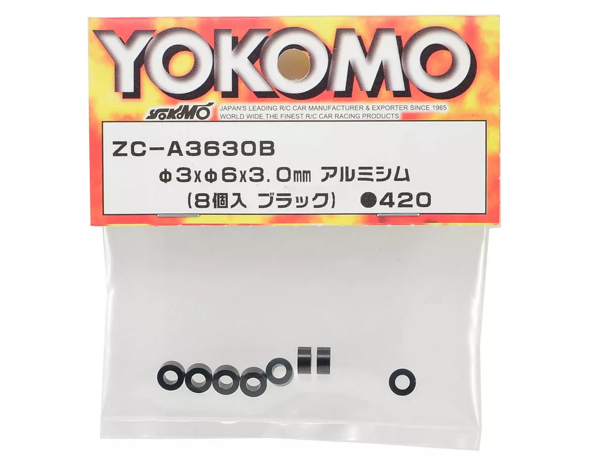 This is a pack of eight replacement Yokomo 3x6x3.0mm Aluminum Shims.