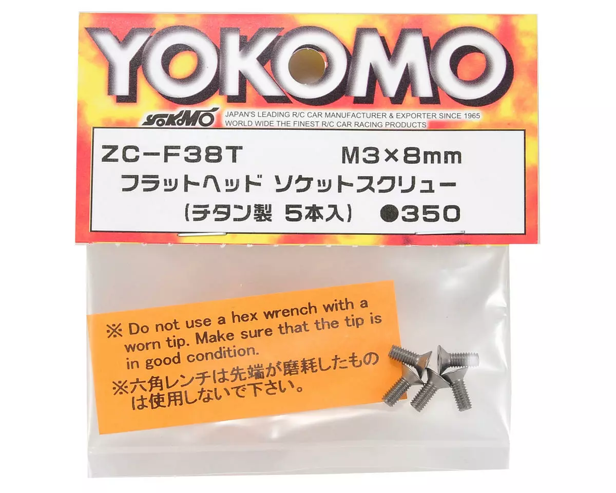 This is a pack of five optional Yokomo 3x8mm Titanium Flat Head Screws, and are intended for use with the Yokomo B-Max2 1/10 scale buggy.