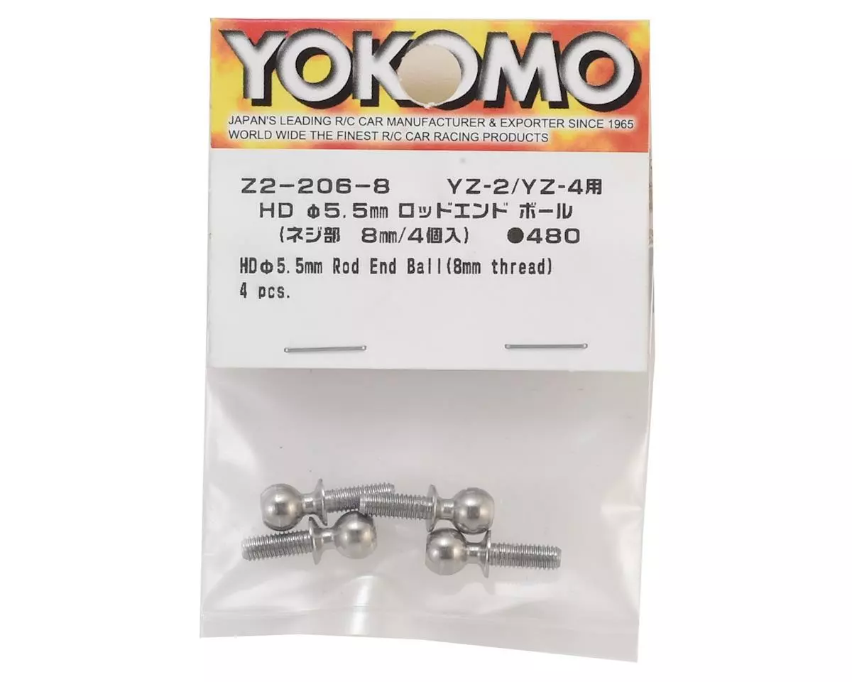 This is a pack of four Yokomo 5.5mm Rod End Balls. These balls feature a 5.5mm ball with 8mm long threads. These ball studs features an increased diameter of the ball to 5.5mm for increased durability while maintaining accuracy. Even in extreme driving such as off-road, there is no dropout of the ball end and it will be a tough suspension around running the race to the end.