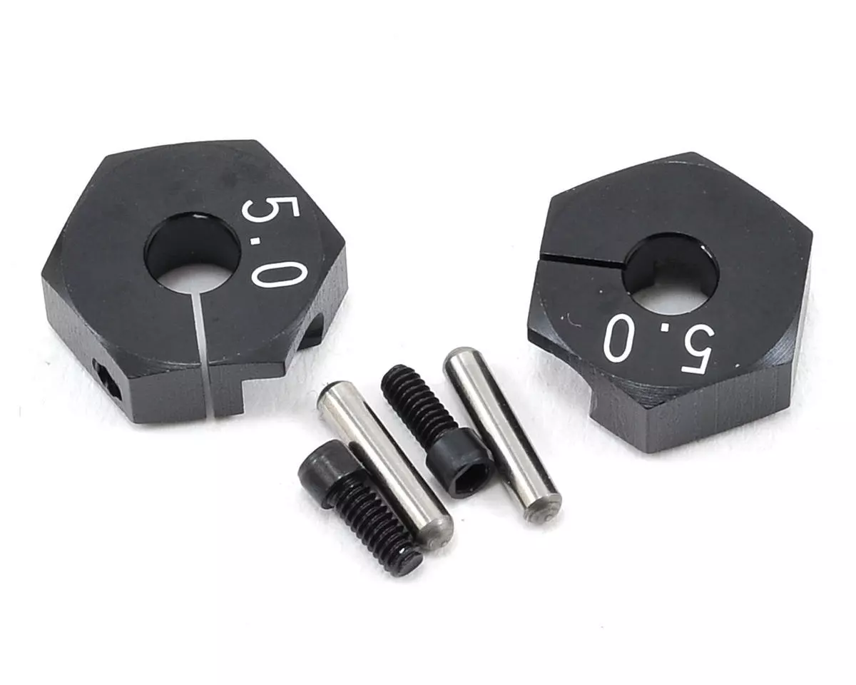 This is a pack of two replacement Yokomo Aluminum Clamp Wheel Hub Hexes with two pins and screws included.