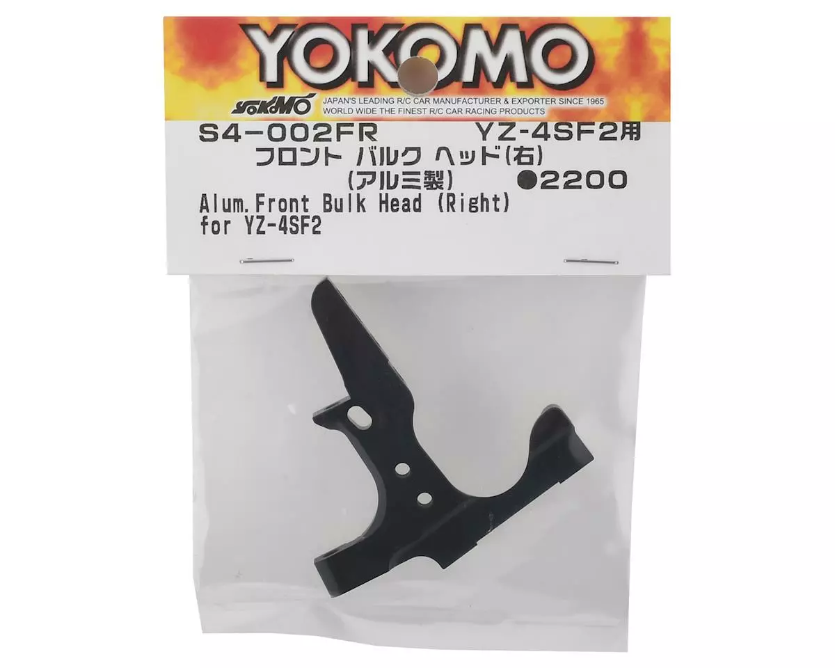 This is a Yokomo Right Aluminum Front Bulkhead, intended for use with the Yokomo YZ-4 SF2 Factory 1/10 Electric 4WD Buggy Kit.