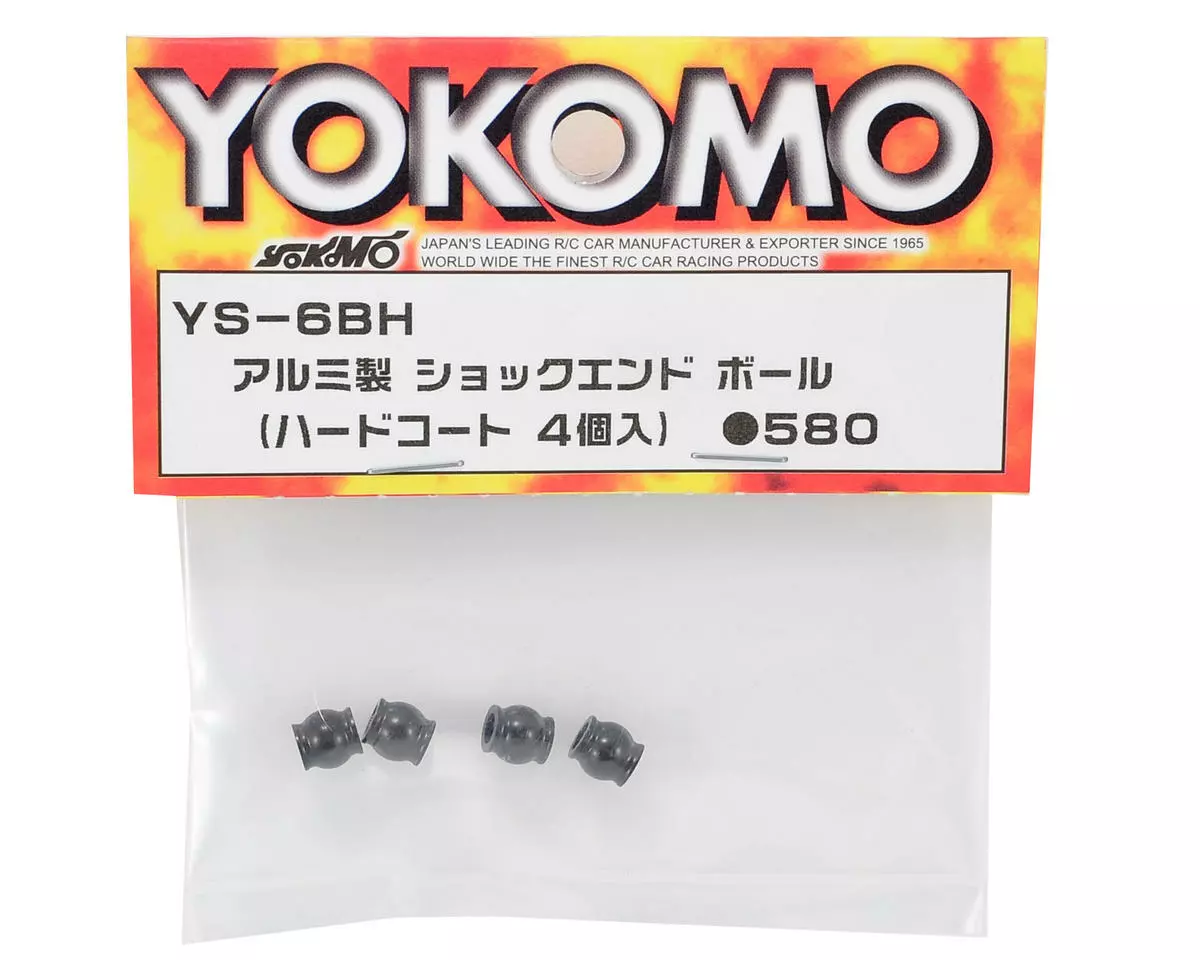 This is a pack of four replacement Yokomo Aluminum Hard Coated Shock End Balls, and are intended for use with the Yokomo B-MAX2 1/10 scale buggy. Having these balls made from hard coated aluminum helps prevent the ball from collapsing due to the screw being over tightened.