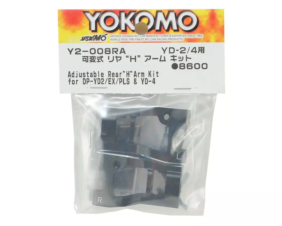 This is the optional Yokomo Aluminum YD-2/YD-4 Adjustable Rear H Arm Kit. This all new rear H arm kit is made of aluminum with Yokomo original high precision processing to enable drivers to make adjustments to chassis tread for finding out the best chassis balance, and also for the best width to suite your body style of choice.