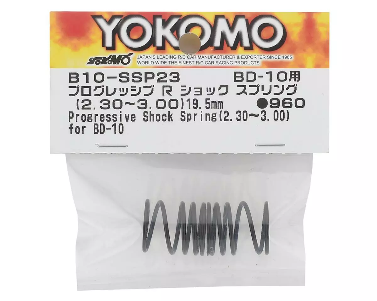This is a replacement set of two Yokomo Progressive Rear Shock Springs, intended for use with the BD10 Electric Touring Car Kit. These are progressive springs that are used as standard on the rear of BD10.
