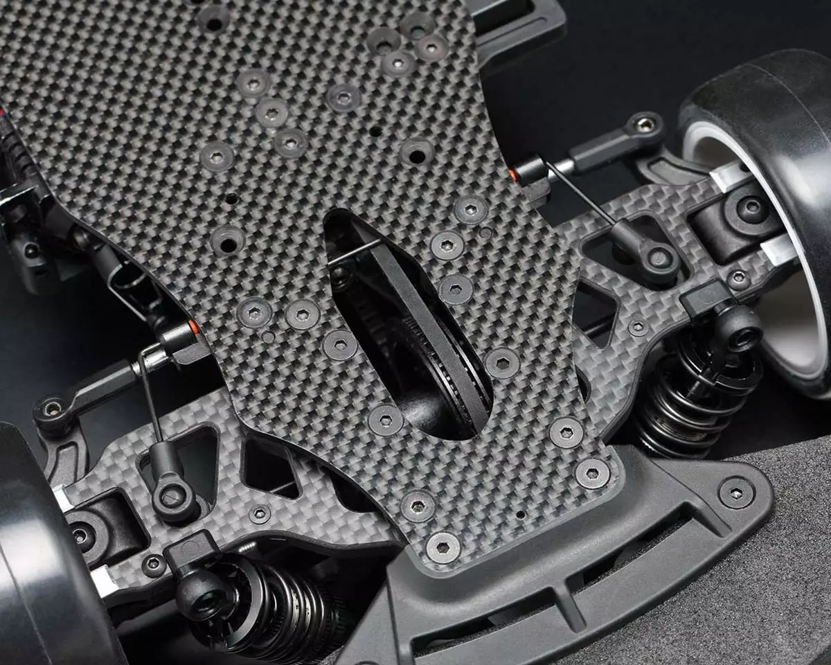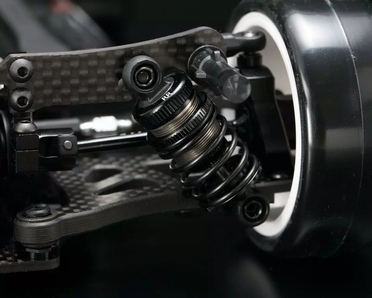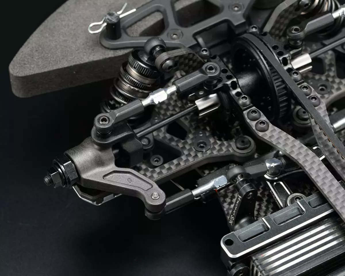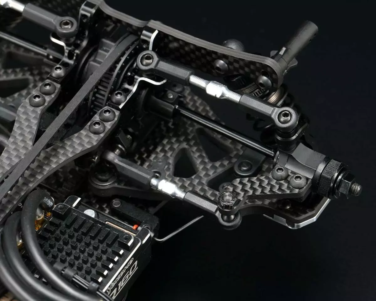 - The high-rigidity long suspension arm is a hybrid design made up of carbon, composite and aluminum parts, reducing chassis roll and improving corner speed. Durability is confirmed by repeated tests, and it is possible to attack corners with confidence.