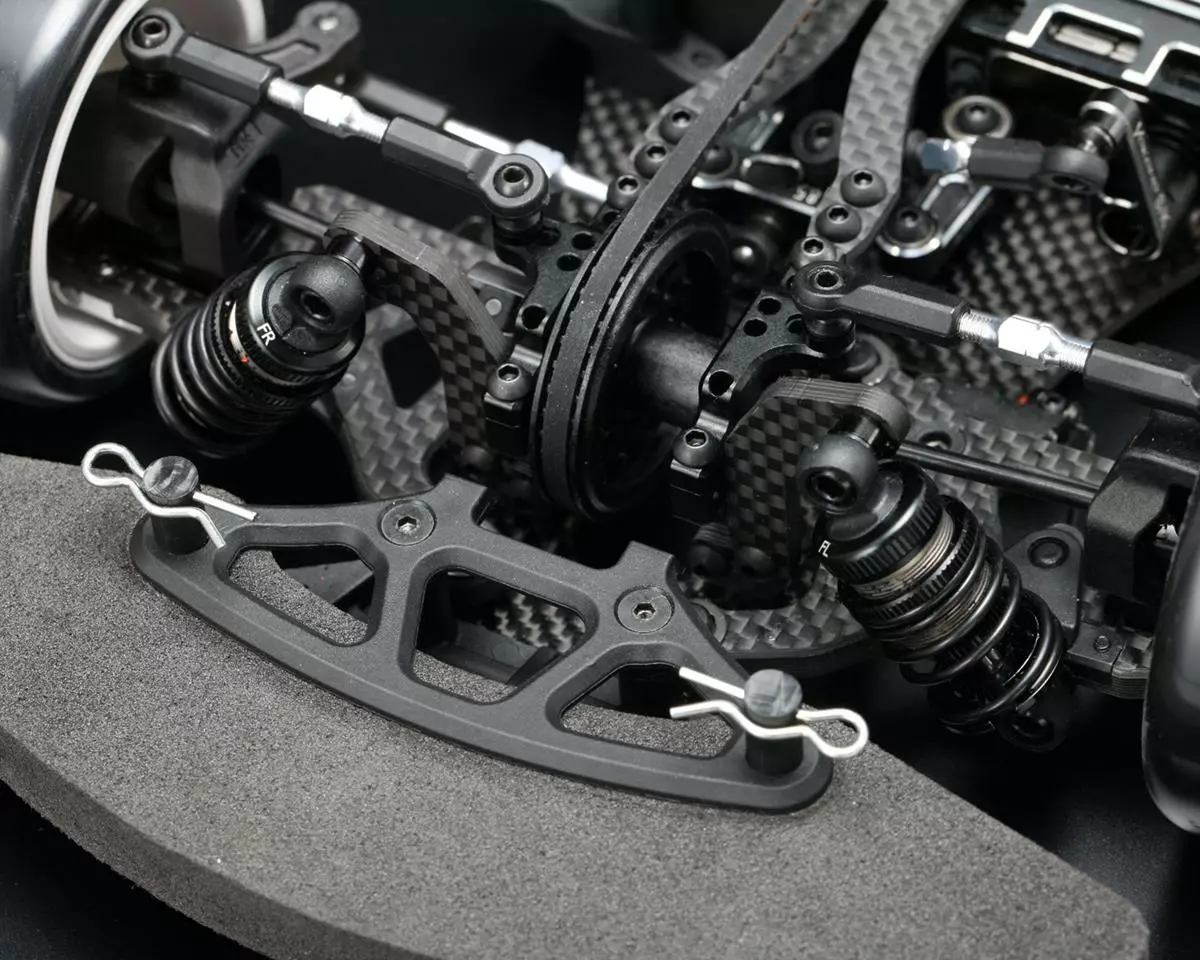 - The front shock tower has undergone a dramatic reshape. By separating the left and right, it gives flexibility around the front and a sleek finish.Â