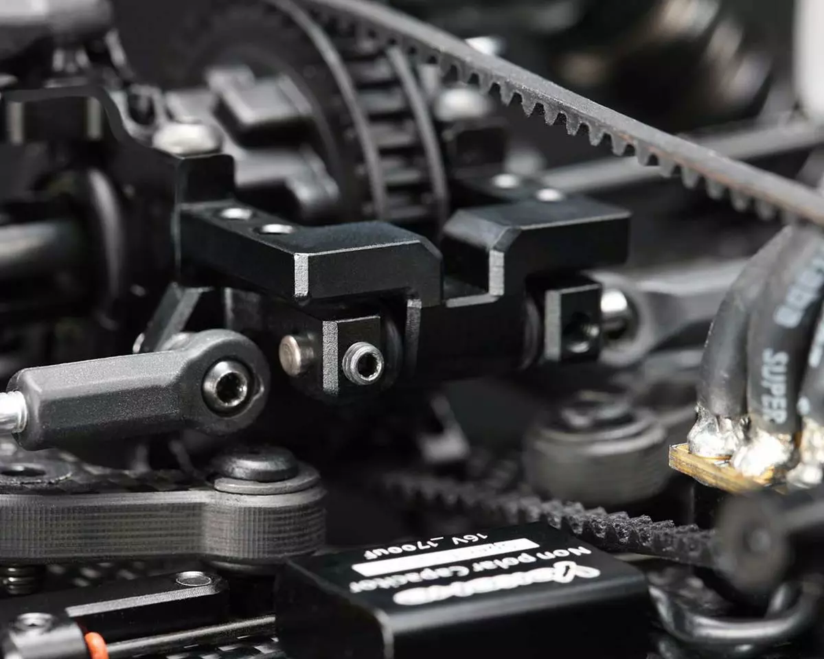 - The kit is equipped with an RTC (rear toe control) system as standard. While increasing the turning speed, it is possible to increase the corner exit acceleration, which is indispensable for modern racing touring cars.