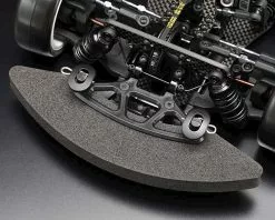 - The joint between the rear side of the upper deck and the bulkhead is Yokomo’s original ATF system (Active Top Deck Flex) that supports roller pins with an O-ring sandwiched between them. The twist of the chassis is pulled out to the maximum and the rear traction is enhanced. By changing the hardness of the O-ring or changing to a spacer, it is a point that you can freely control the turning performance.