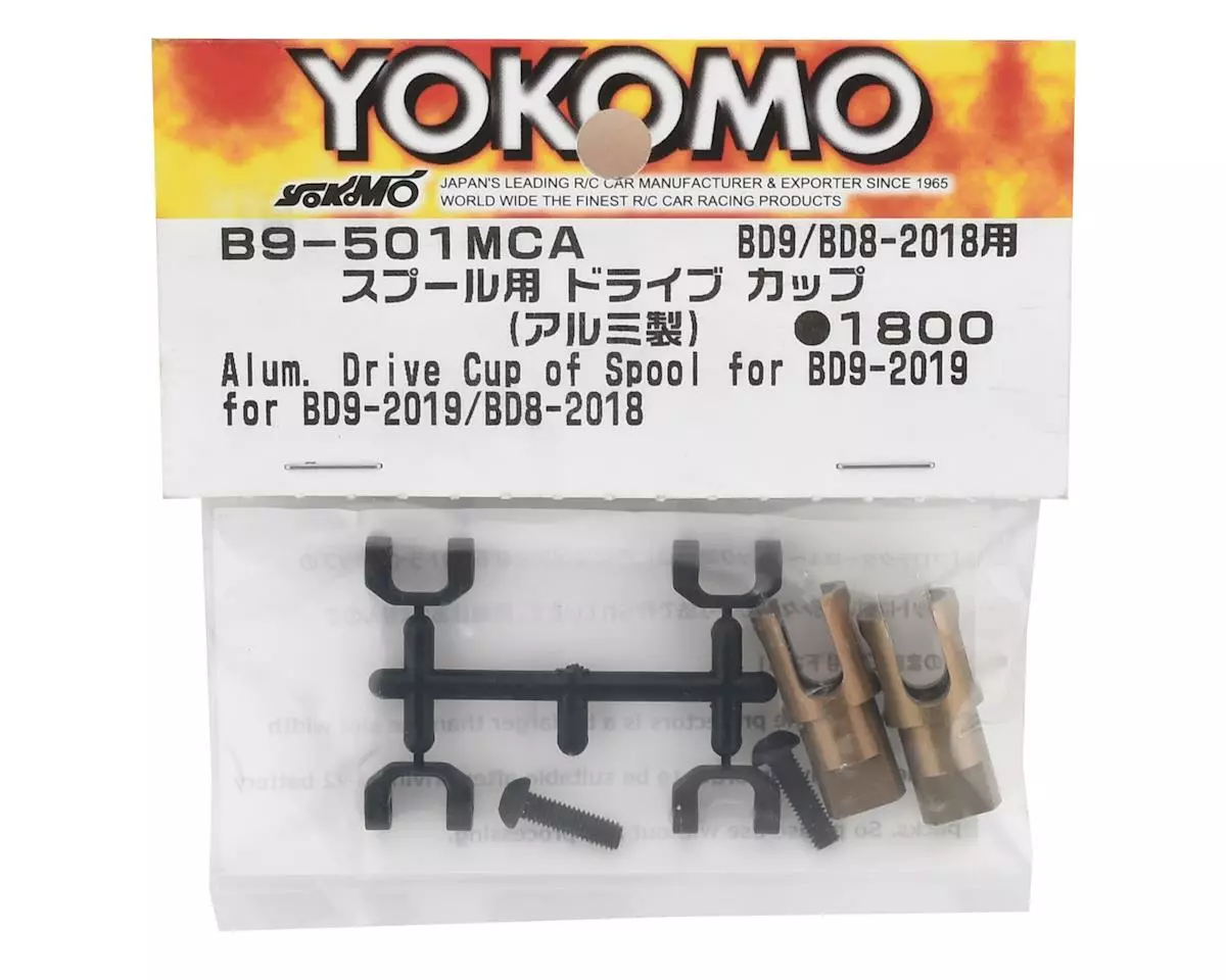 Yokomo BD9 Aluminum Spool Drive Cup. These optional outdrives are lighter than the stock steel outdrives. Package includes two outdrives, four driveshaft blades and hardware.