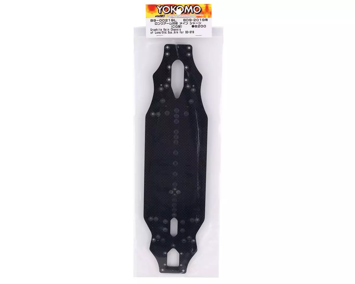 Yokomo BD9 Carbon Graphite Main Chassis. This optional chassis allows the user to attach the BD10 Standard 2mm suspension arm on the BD9. Package includes one chassis.