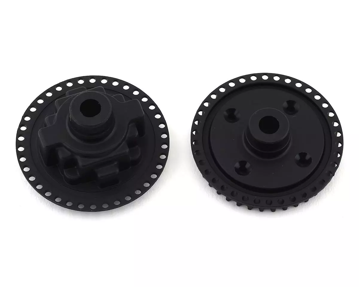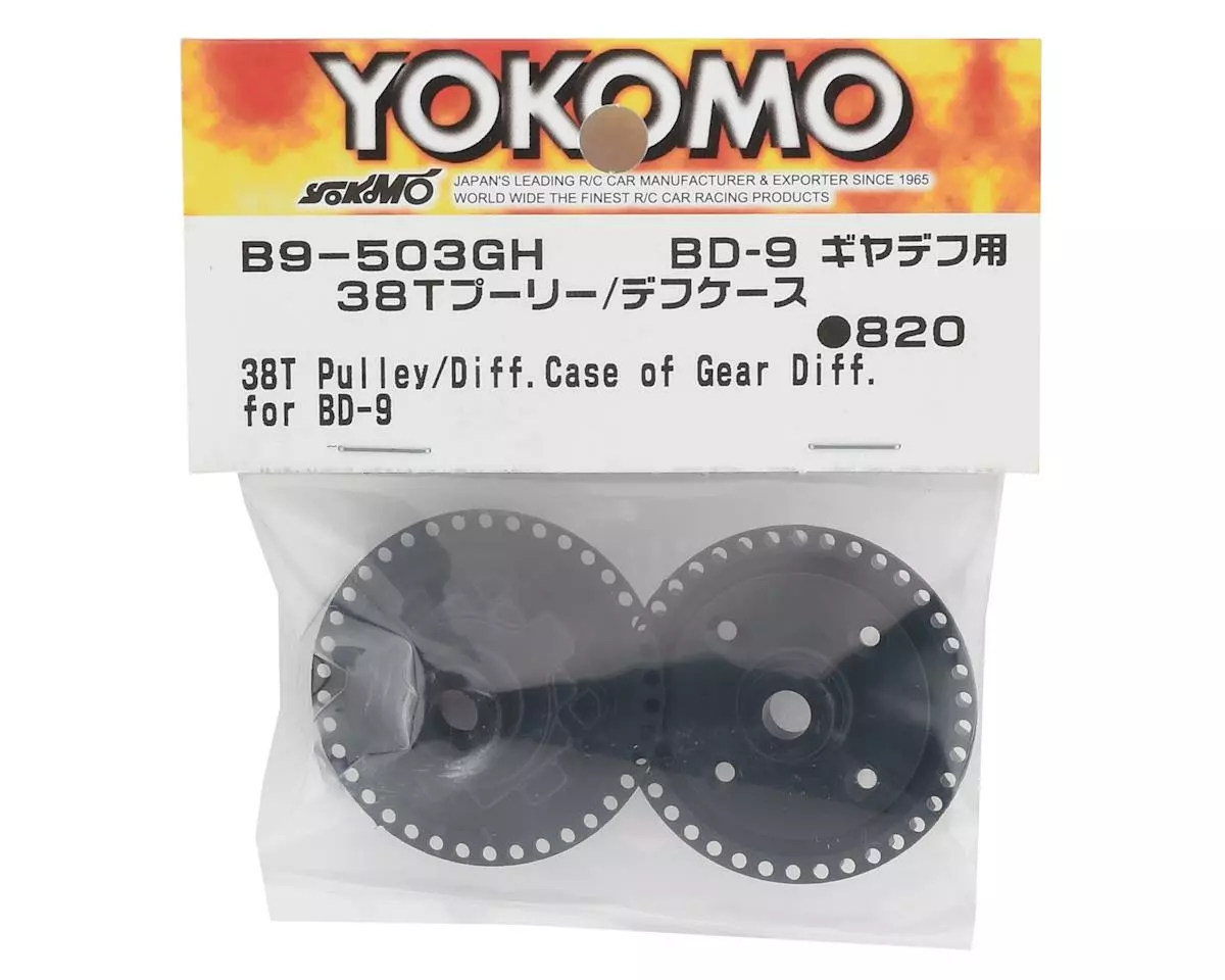 Yokomo BD9 Pulley/Differential Case. This is the replacement 38 tooth gear diff case. Package includes right and left side diff case halves.