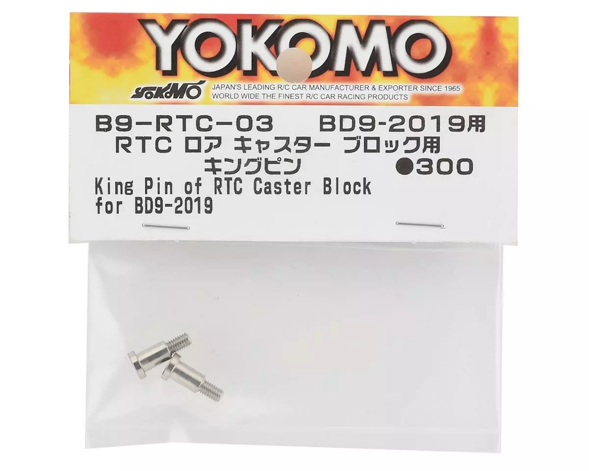 Yokomo BD9 RTC Lower Caster Block. This is a replacement for BD9 models equipped with the Yokomo RTC Rear Toe Control System (YOKB9-RTC). Package includes two lower caster block pins.