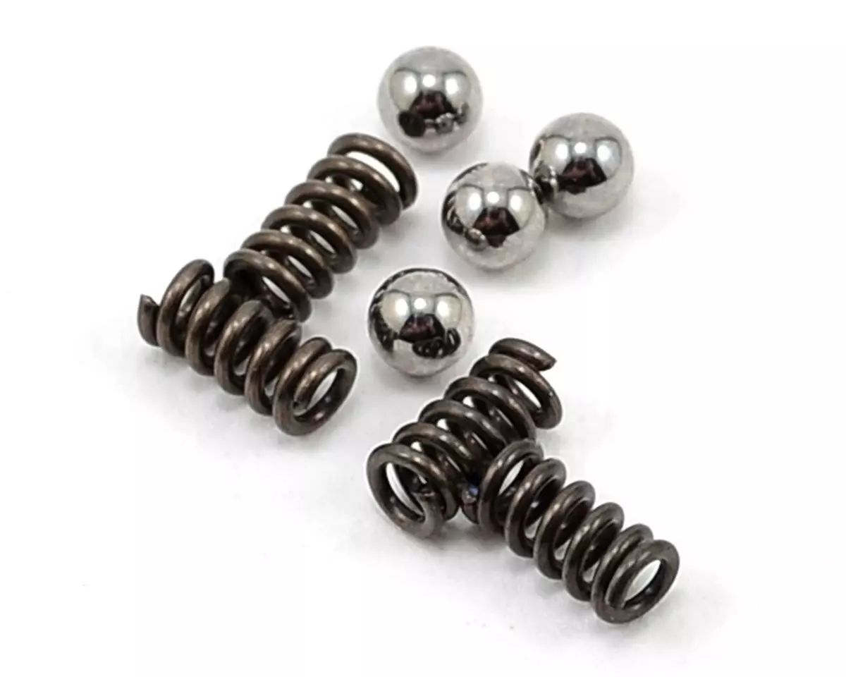 This is an optional Yokomo Belt Tension Cam Spring Set, and is intended for use with the Yokomo BD7 1/10 scale touring car. This set includes four springs and four balls. When rotating the cam belt tension, this spring and ball set makes it easier to understand the rotational position because the ball creates a click feeling in the cam.