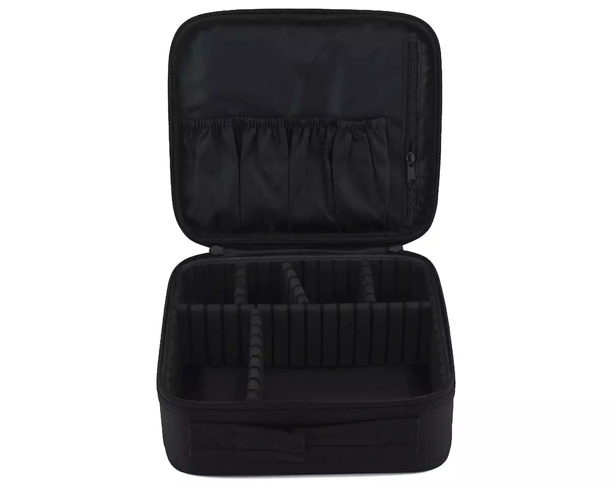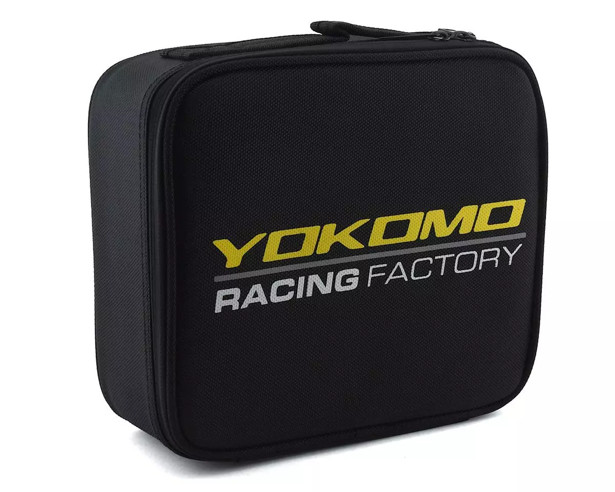 The Yokomo Compact Nylon Tool Bag is manufactured from durable nylon fabric and heavy duty sewing. The main storage compartment is double zip type which makes easy to open or close the bag. Yokomo’s racing factory logo is found on the front, while the back of the lid has a compartment pocket for storing tools and a zipper pocket for storing thin items. The main compartment includes sliding dividers that allow you to adjust the size of each cavity and tailor the inner compartment to your needs. The solid design allows you to carry a variety of items, and prevents the bag from losing its shape.
