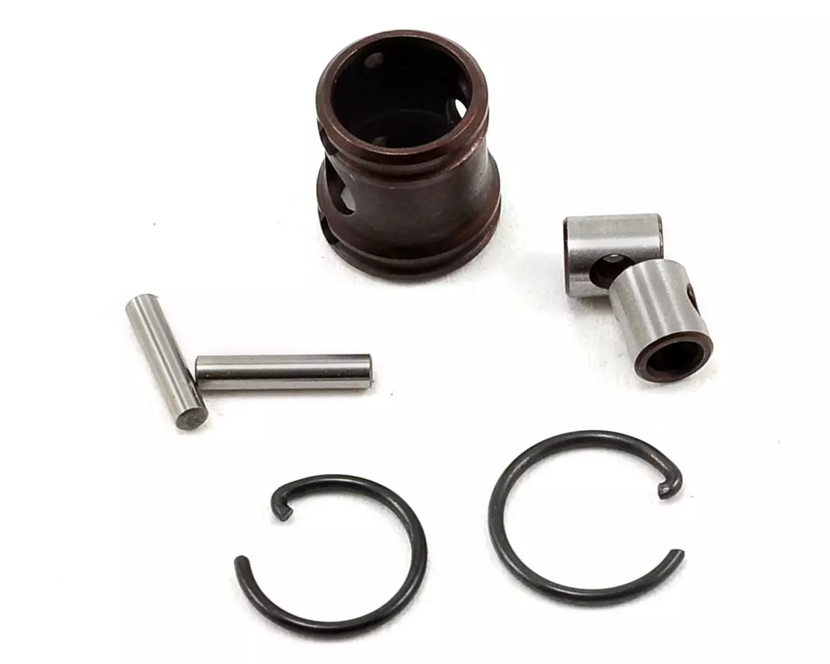 This is a replacement Yokomo Front Double Joint/Pin Set, intended for use with the optional Yokomo Front Double Joint Universal Shaft Set (YOKBD-010FWC). This set includes the aluminum joint, two barrels, two pins and two clips; enough parts to service one driveshaft.