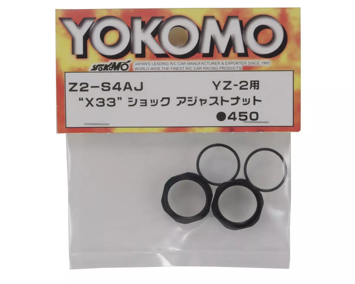 This is a pack of two replacement Yokomo X33 Shock Adjuster Nuts. This package also includes two o-rings.