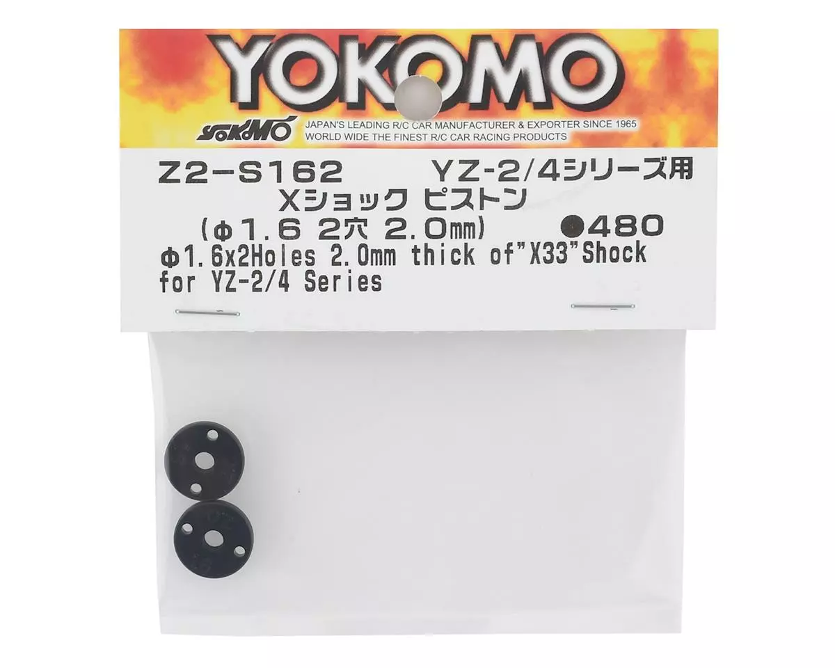 The Yokomo X33 X Shock Piston Set is intended for use with the Yokomo YZ-2 Electric Buggy Kits using X33 shocks. This pack includes of two 2.0mm thick, 2 x 1.6mm hole pistons.