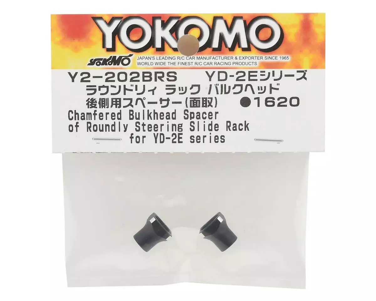 This is a set of Yokomo Curved Slide Rack Bulkhead Spacers, intended for use with the Yokomo YD-2 2WD RWD Drift Car Kit as an optional part. These lightweight aluminum spacers are anodized black for added strength and style.