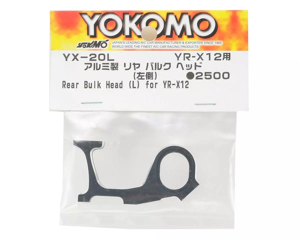 Yokomo YX-20L Aluminum Rear Bulk Head (Left). This is a replacement left side rear bulk head for the YR-X12 pan car.