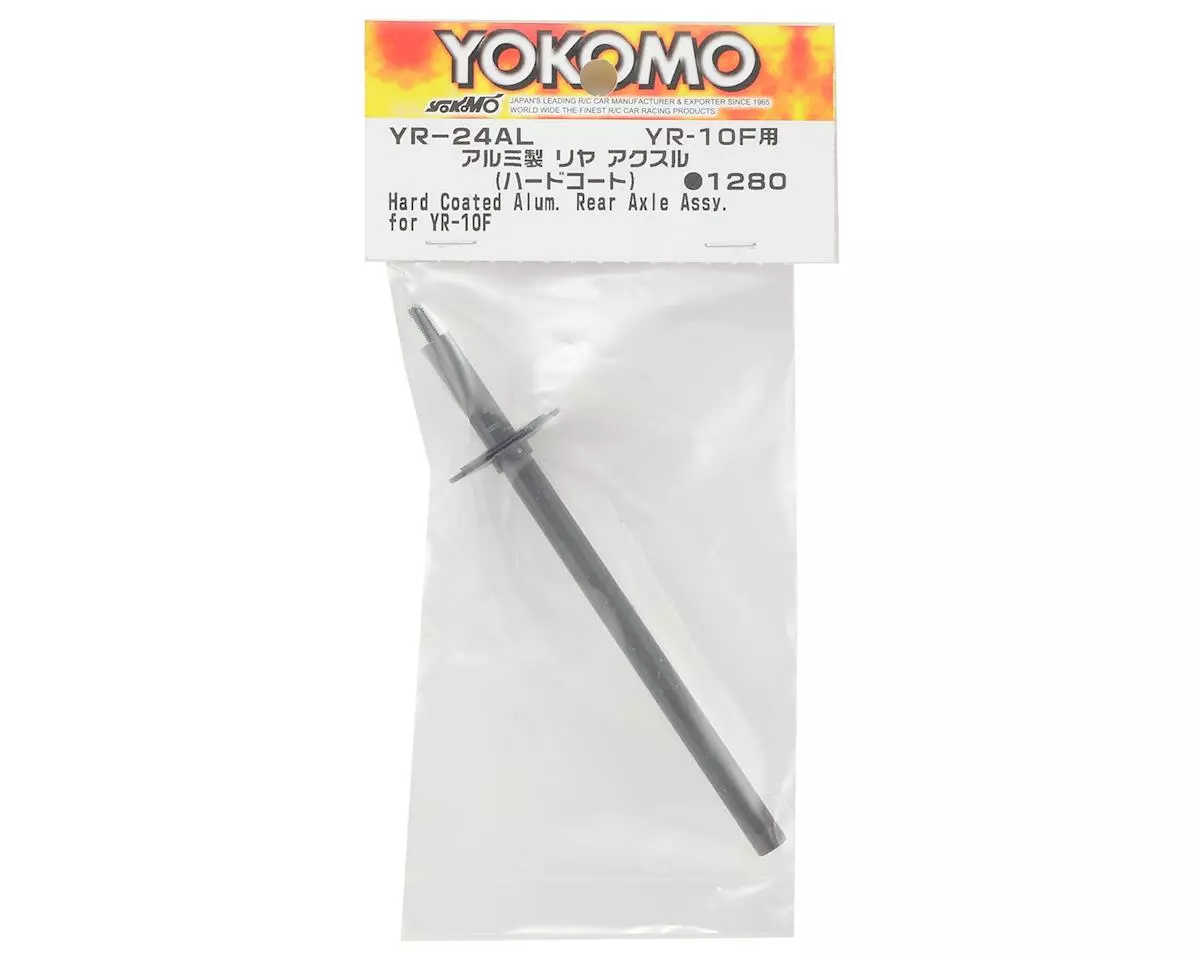Yokomo YR-24AL Aluminum Rear Axle (Hard). This is an optional hard coated, lightweight aluminum rear axle for the YR-10 Formula. The hard coated surface resists scratching, and because it’s lighter than the stock steel shaft it promotes increased throttle response.