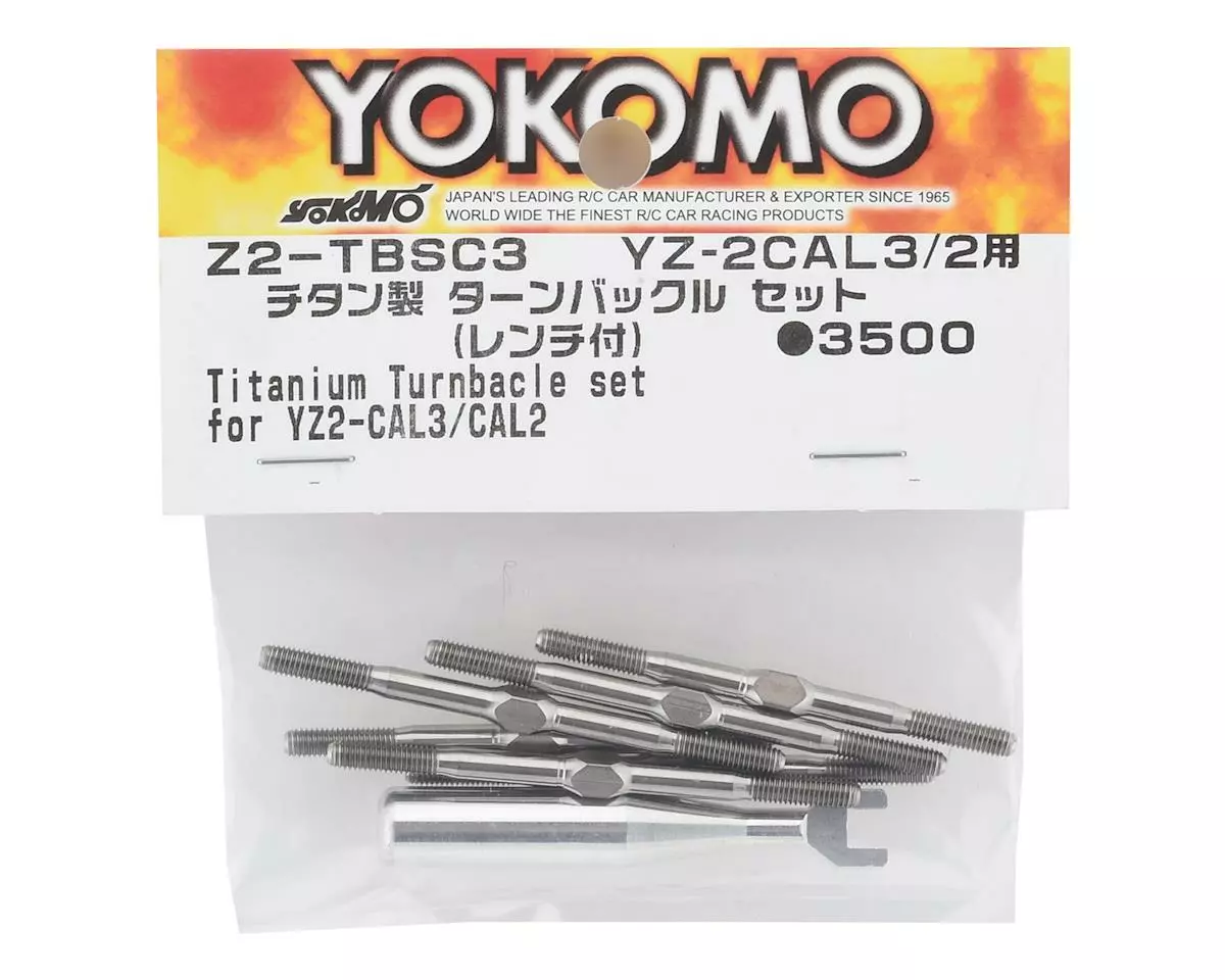 The Yokomo YZ-2CA L3 and L2 Titanium Turn Buckle Set is intended for use with the Yokomo YZ-2 CA L3 and L2 Electric Buggy Kits. This optional set of turnbuckles provide improved strength over the stock items. This pack includes six turnbuckles and a turnbuckle wrench.