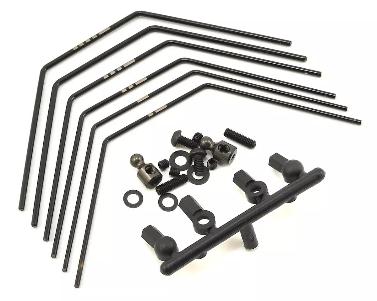This is an optional Yokomo YZ-2 Rear “Hard” Sway Bar Set for use on the YZ-2 and YZ-4 buggies. These bars helps prevent over-roll and has an effect on improving performance and steering response. Especially effective on high grip road surfaces, leading to prevention of high side by reducing rolls. Six types of stabilizer bars from 1.5mm to 2.0mm are included, so you can choose properly depending on the situation.