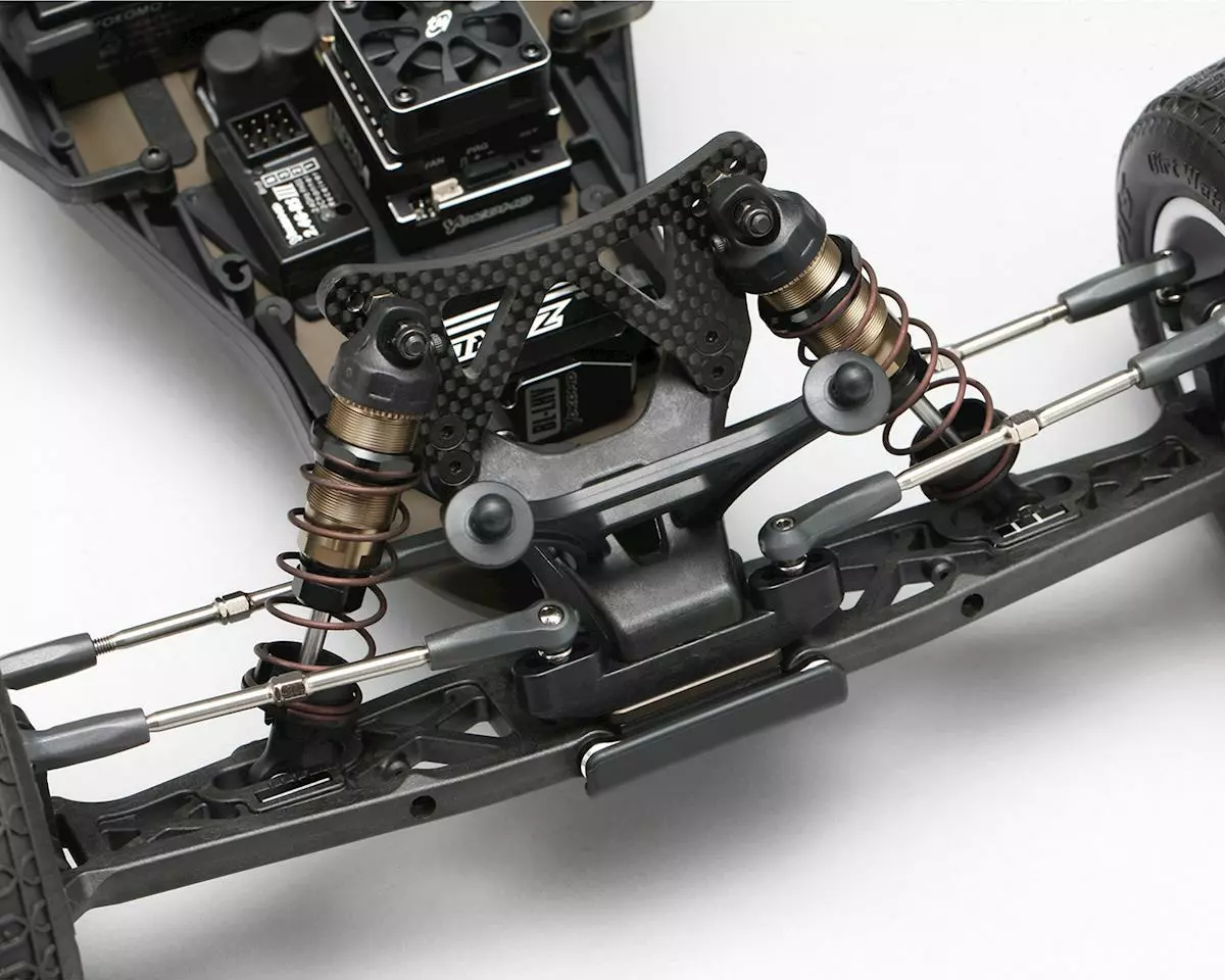 - Aluminum rear suspension mounts and clearly marked rear suspension bushings make adjusting rear toe and skid angle very easy.