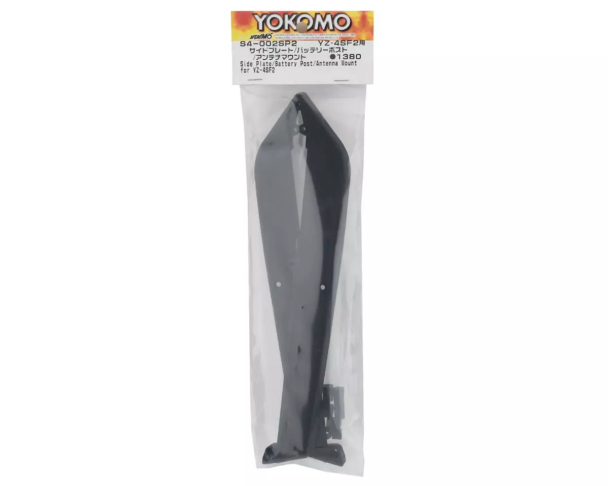 Yokomo YZ-4 SF2 Chassis Guard Set. Package includes replacement side plates, battery post and antenna mount.Â