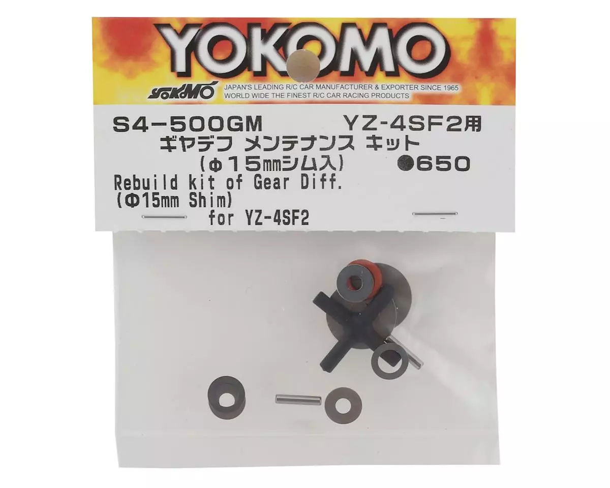 Yokomo YZ-4 SF2 Gear Differential Maintenance Kit. Package includes replacement cross pin, pins, shims and o-rings needed for one differential.